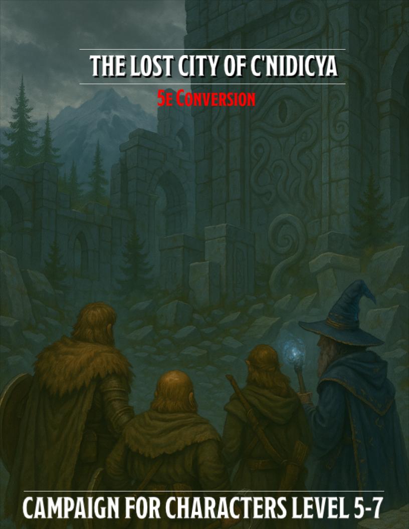 Having routed Tharnakk the Oathbreaker and putting the goblin alchemy lab under the side of a mountain,the trail of humanoids and cultists leads further into the spurs of the Griff mountains where a Lost City, C’nidicya stands empty — or so it seems to discover a growing horror lurking below and a plan for war across the Tenh among giantkind.