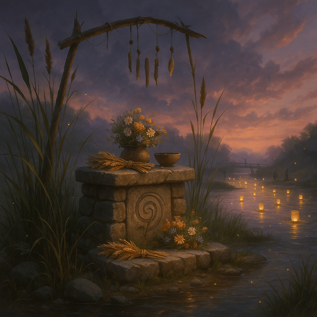 At dusk, villagers light small floating lanterns on the water, asking Beory for safe passage and calm currents.