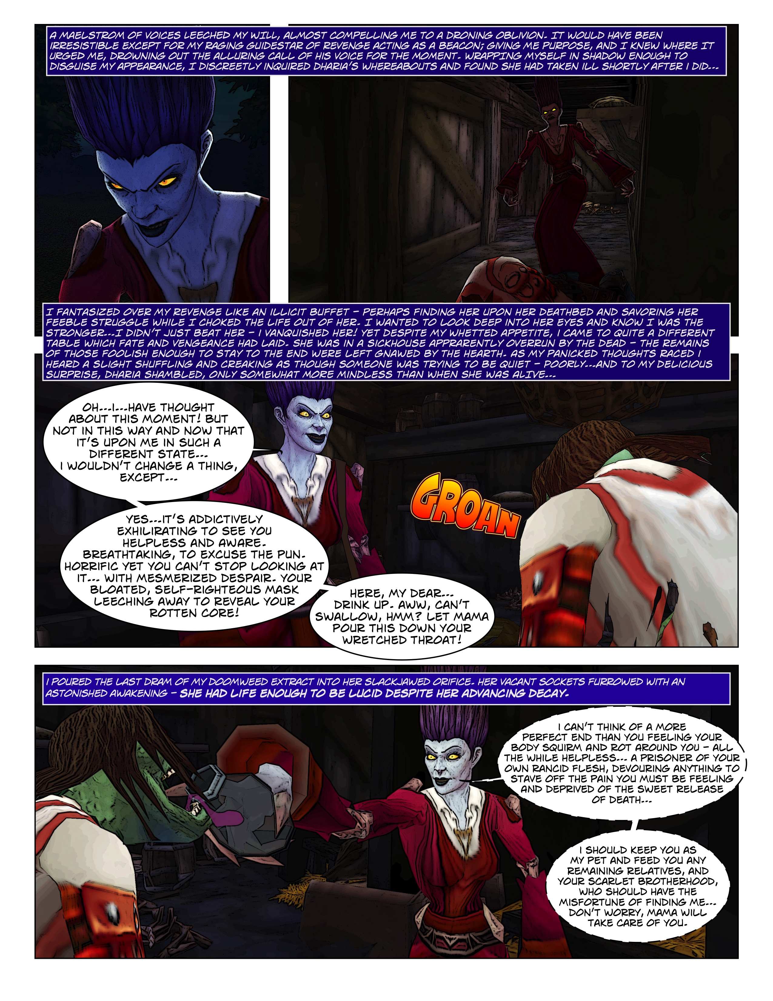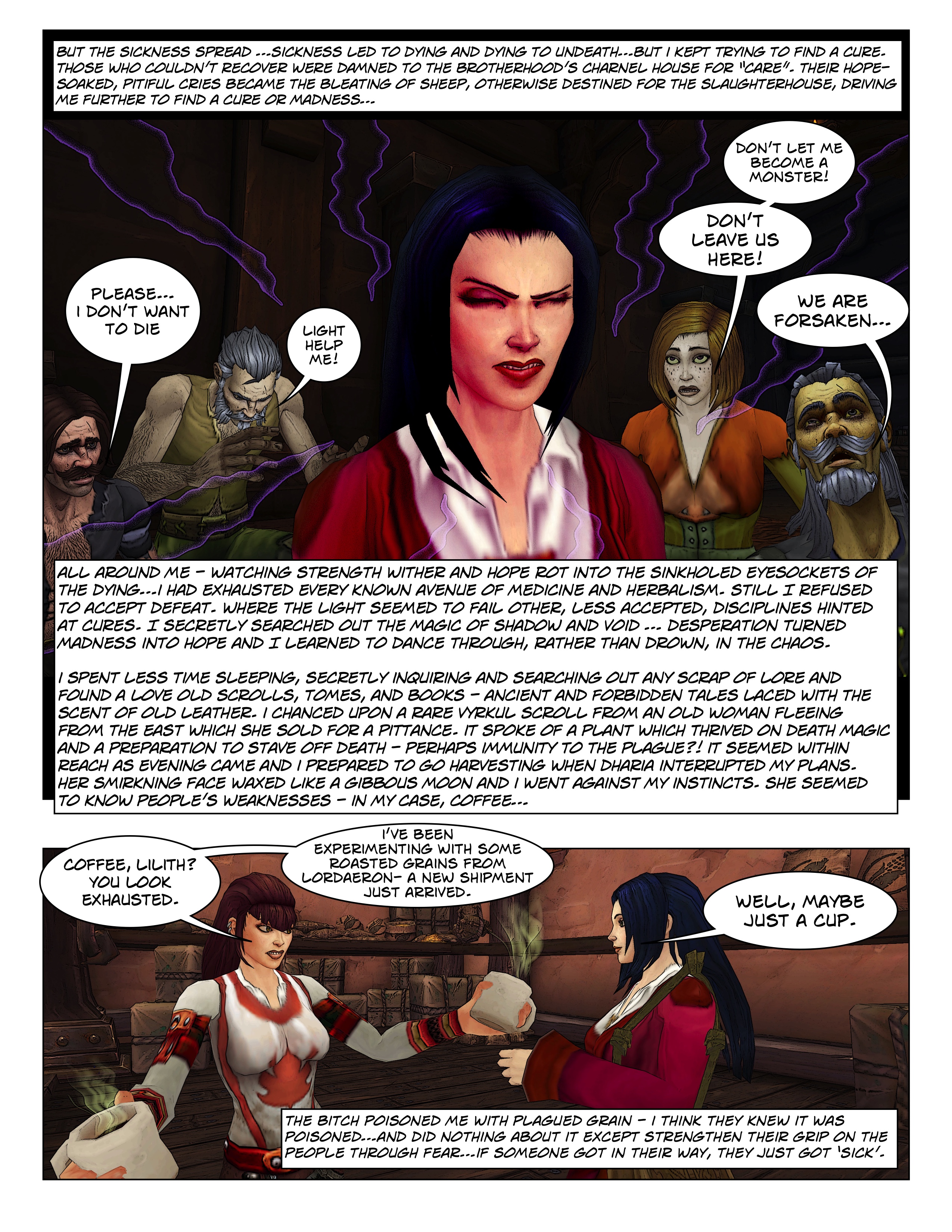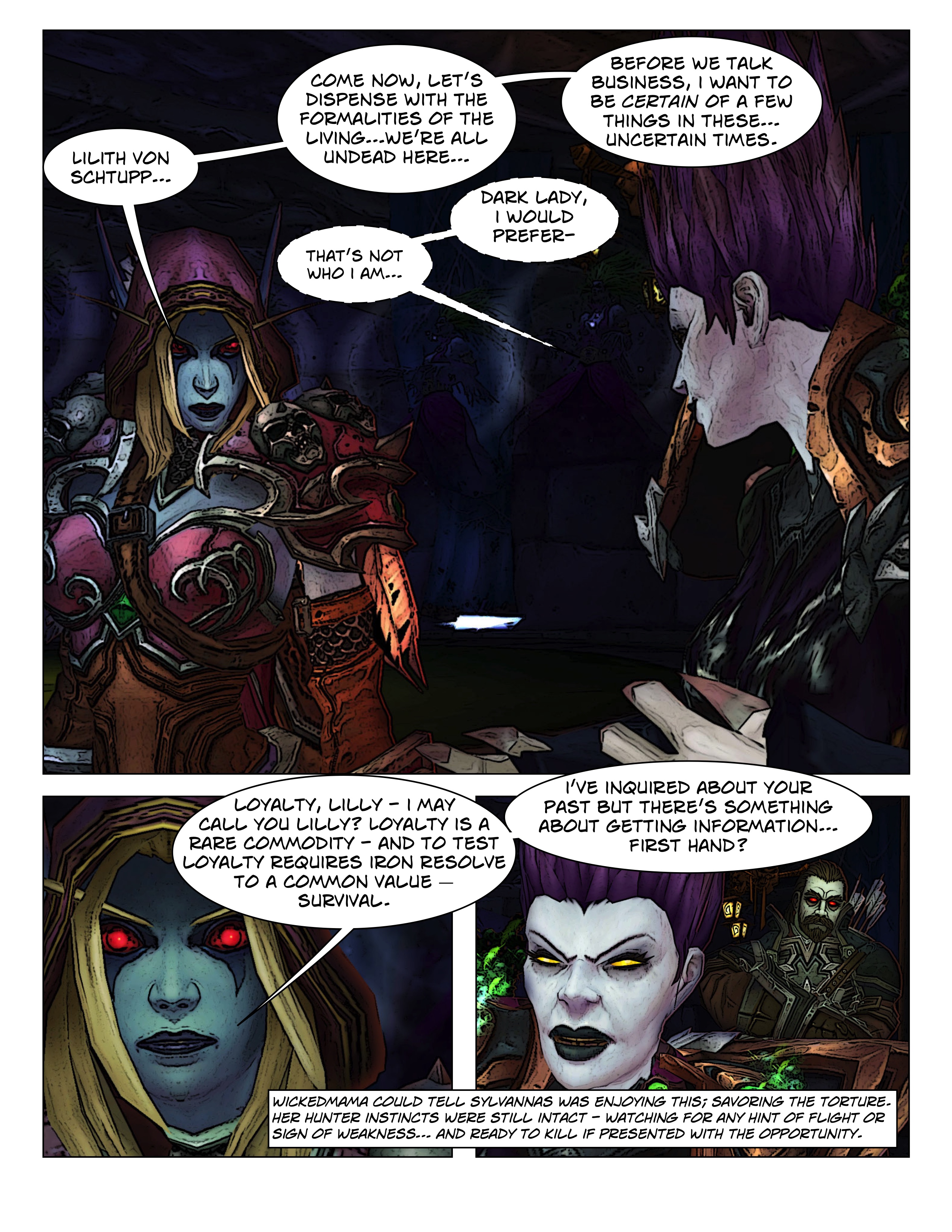 The origin story for Wickedmama, set during the time of the Scourge and the Scarlet Crusade; timely in that it was written during the 2019-2021 pandemic. A secret meeting with the new Warchief leads to intrigue as she sends Wickedmama on a secretive quest for an artifact tied to undeath. Her audience probes Wickedmama’s past, whether to question her loyalty or something more, leading her to question whether Sylvanas has darker plans.