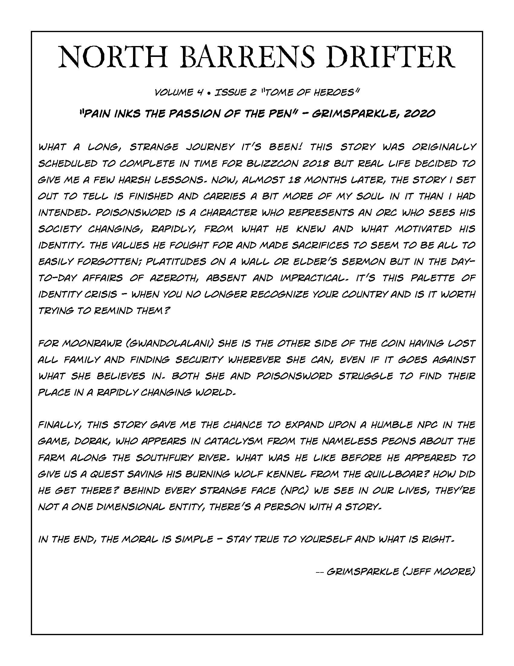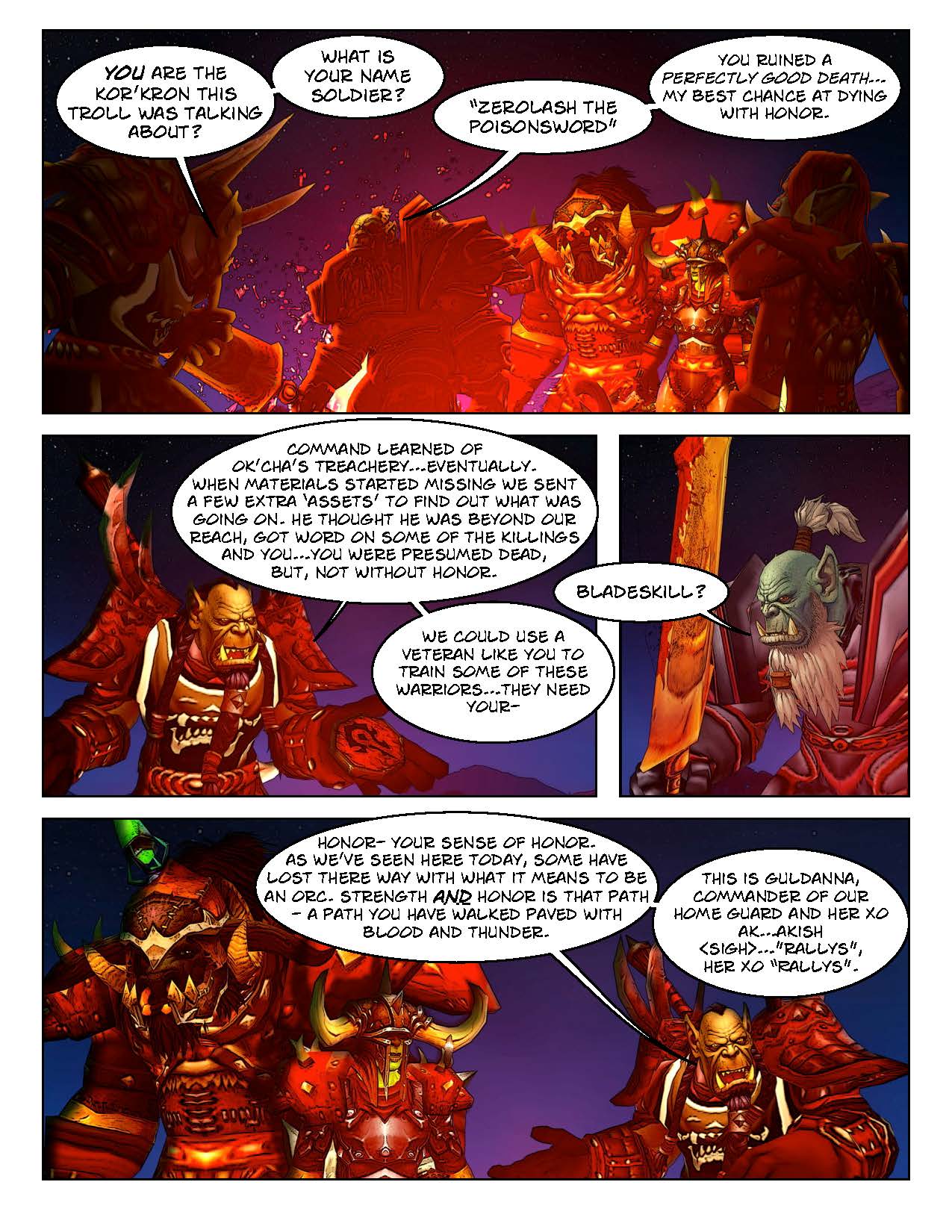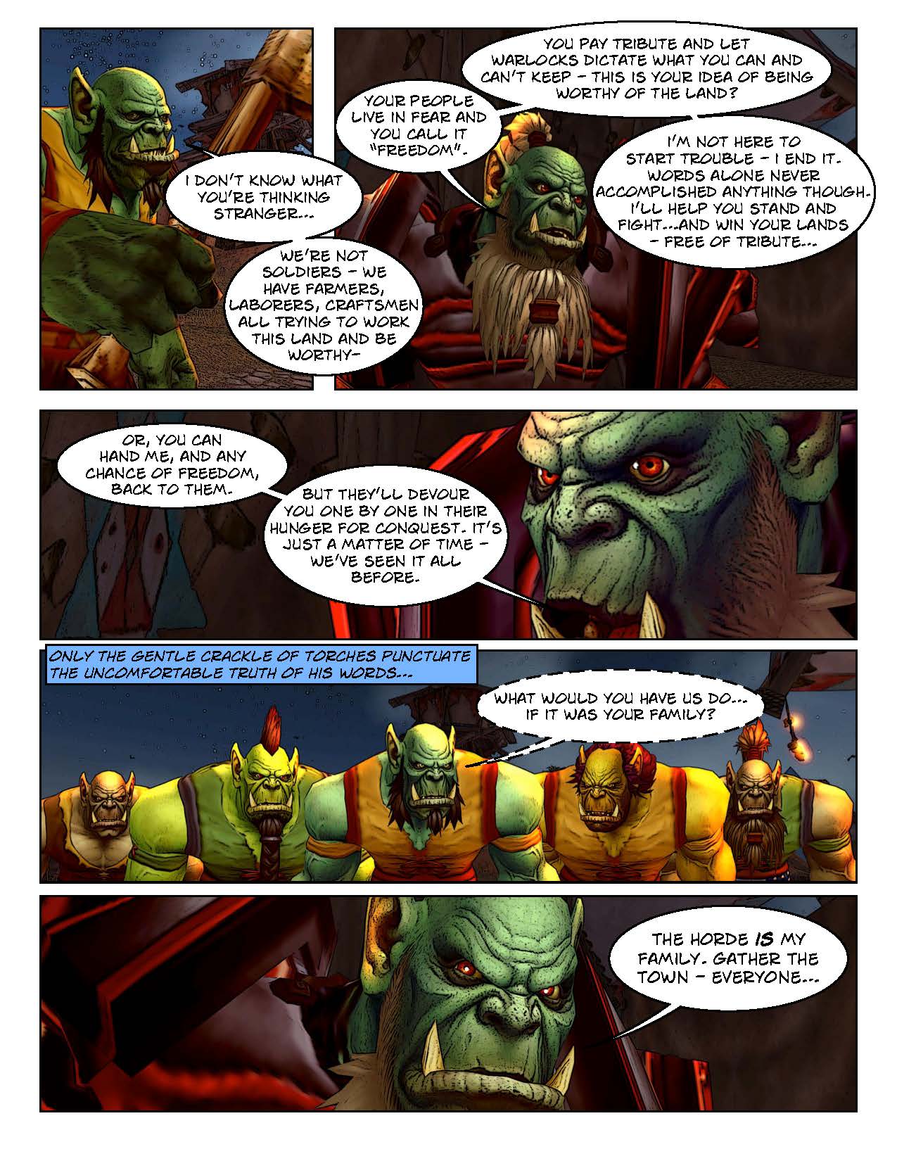 A lone warrior roams as a vagrant across the dry lands of Durotar. His travels cross paths with the Burning Blade, a splinter faction of orcs obsessed with demonic power and oppressing their kin who try to start a new life. The Horde faces a nascent challenge for it’s own legitimacy – can they prove that strength and honor is more than words or is it forged in blood and sacrifice?